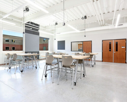 The 20,000-square-foot addition expanded the existing high school with a 2,700-square-foot metal shop, a 1,500-square-foot agricultural shop, a 4,000-square-foot wood shop, and an 11,800-square-foot two-story classroom area housing five classrooms and support spaces.